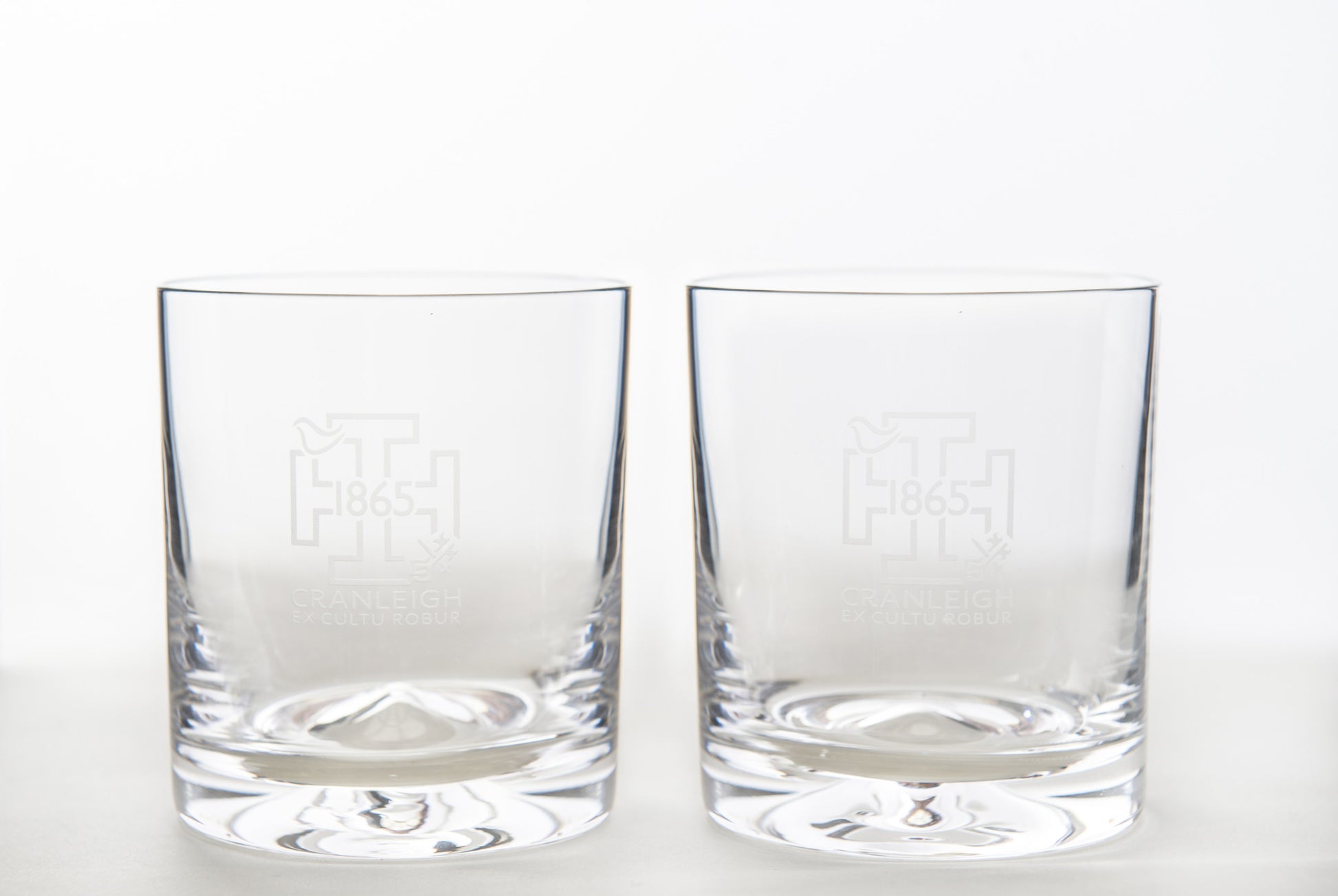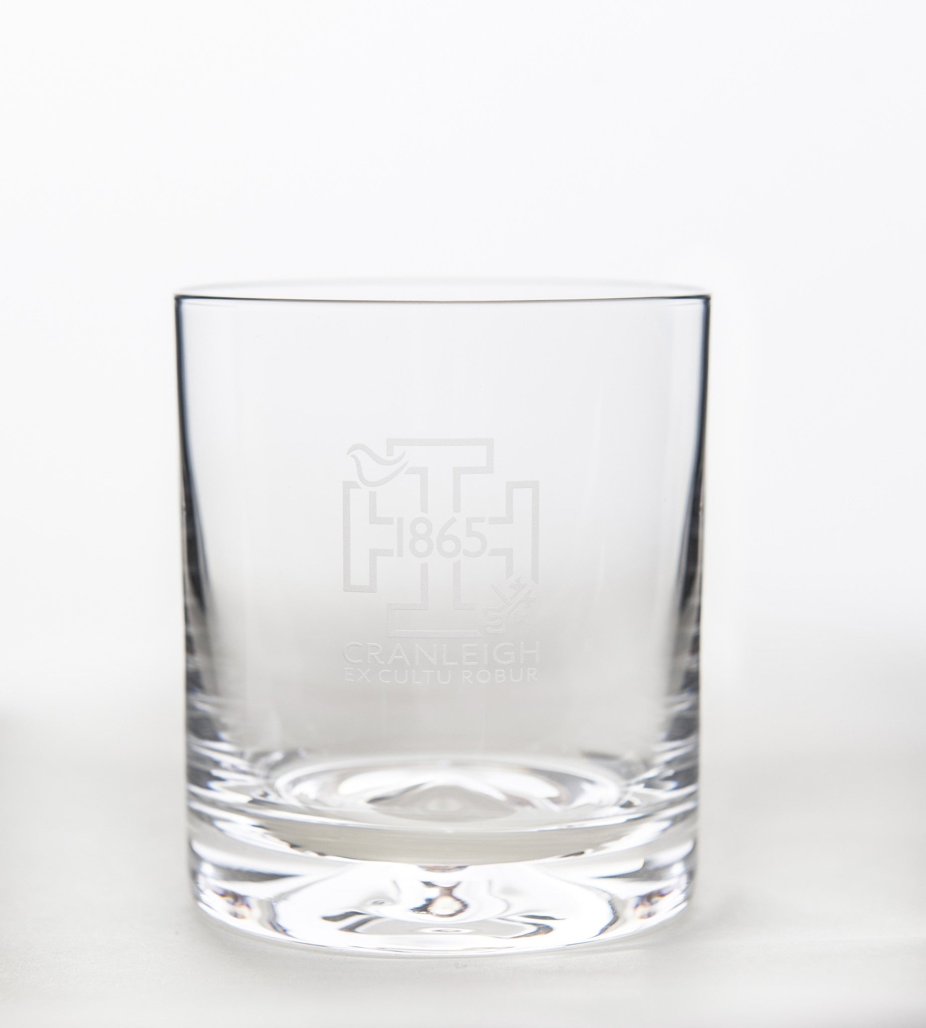 A pair of Dimple Old Fashioned Dartington whisky glasses, engraved with the 1865 crest to celebrate the 150th Anniversary. This attractive glass tumbler is a great choice for whisky as well as a variety of other spirits. Dimensions: 90mm (h); Capacity: 25cl. Gift boxed.